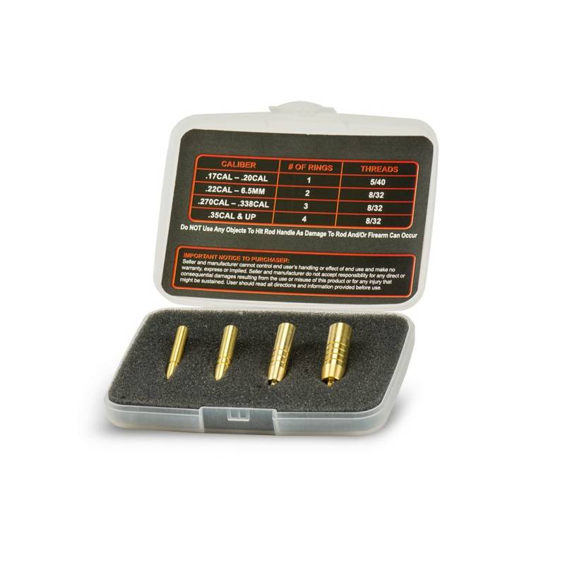 Machined from solid brass the Knock Outs work on both rifles and pistols from .17-.50 caliber. Convenient identification rings machined into each of the 4 included tips ensures the proper pairing to the caliber.
