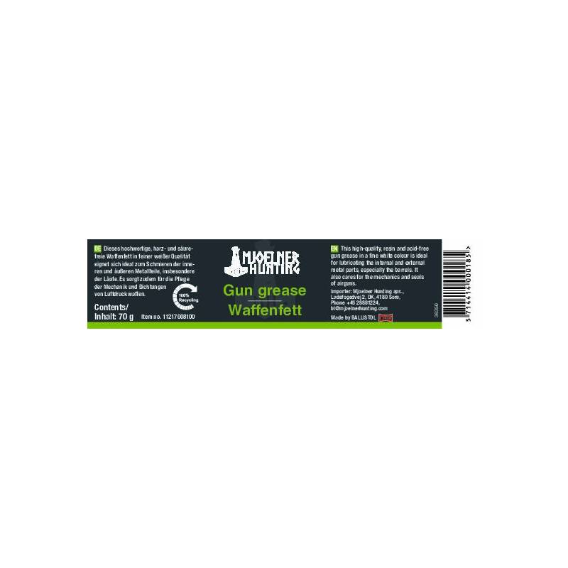 The Mjoelner Gun Grease (70 g) is a high-quality, resin- and acid-free grease designed for reliable firearm maintenance. Its fine white formula is perfect for lubricating both internal and external metal parts, ensuring smooth operation of rifles, shotguns, and airguns.