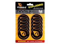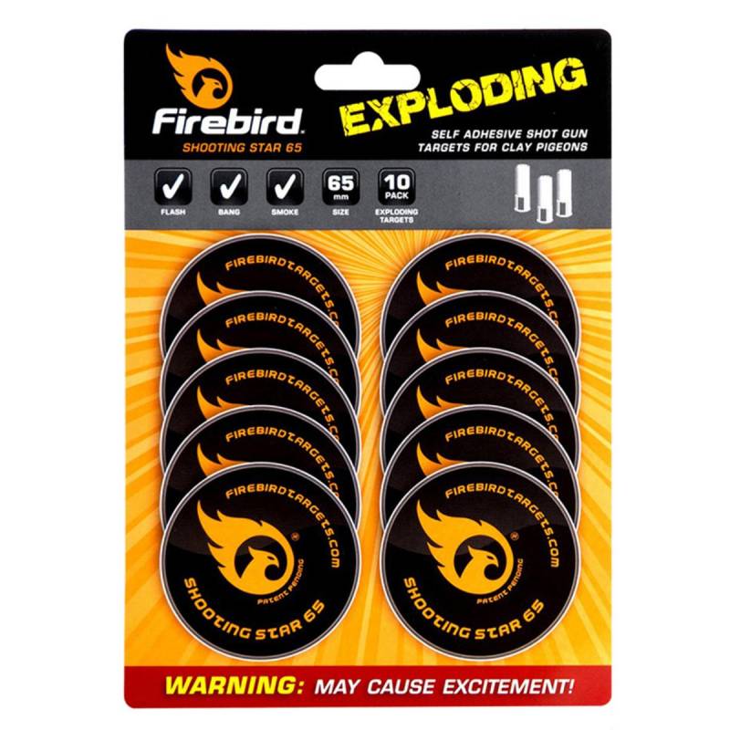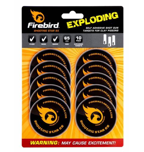 Each pack contains 10 65mm targets with double sided high tack adhesive affixed to the back. Fix the target into the underside of a standard clay and shoot! The target will ignite with a pyrotechnic effect, white smoke and loud report as a result of a direct hit. It really does make shooting fun and is great for spectators too!