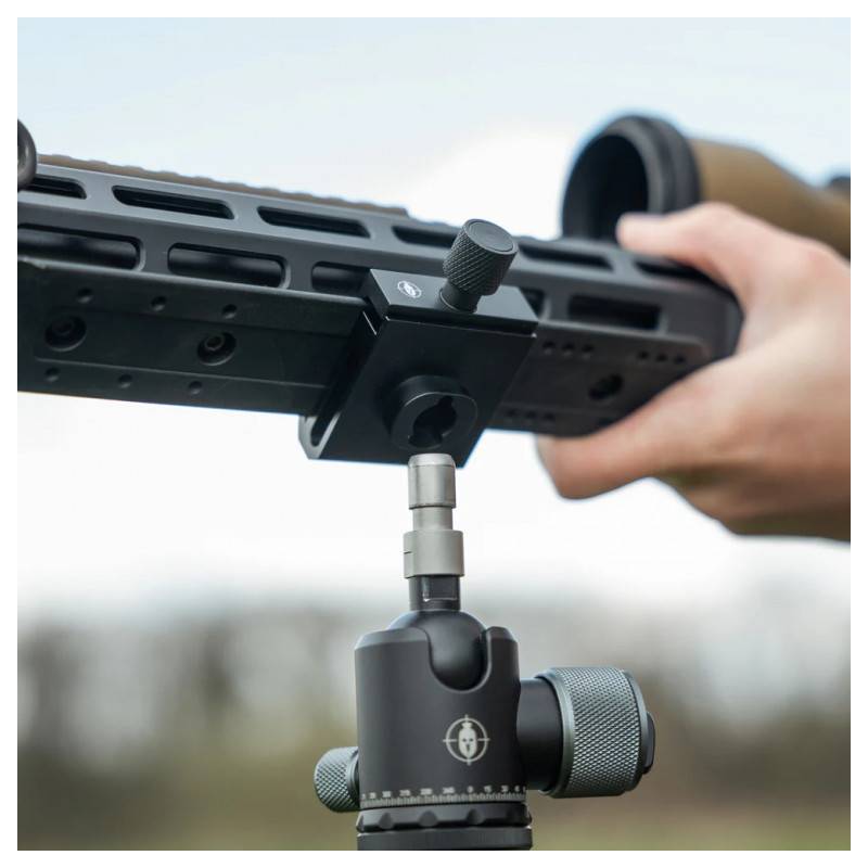 The adaptor supports both fixed target and traversable hunting modes when used with the Spartan Javelin Bipod, enhancing its functionality in a variety of shooting disciplines. With compact dimensions of 45mm x 67mm x 24mm, it remains unobtrusive on your rifle setup.
