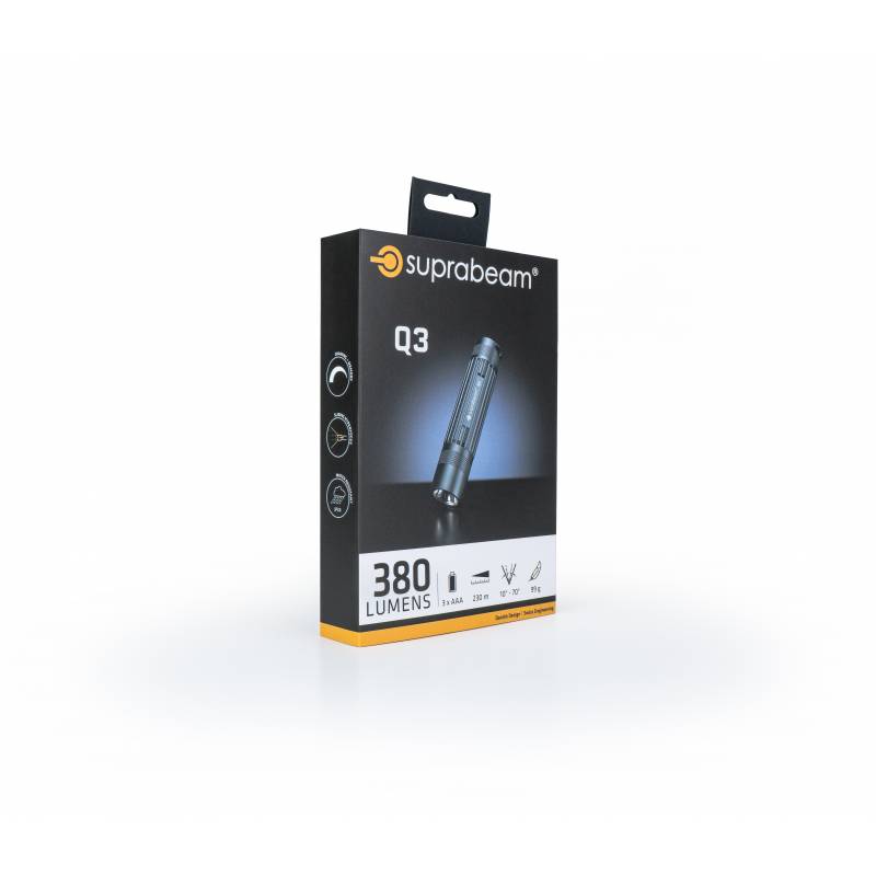 The Suprabeam Q3 380 lm Compact Torch is a reliable, high-performance handheld flashlight designed for professionals and outdoor users who need powerful, versatile lighting in a small package. With up to 380 lumens of output and an efficient sliding Hyperfocus™ optic system, you can smoothly tailor the beam from wide area illumination to a focused long-range spotlight – perfect for inspections, work tasks or navigating dark environments.