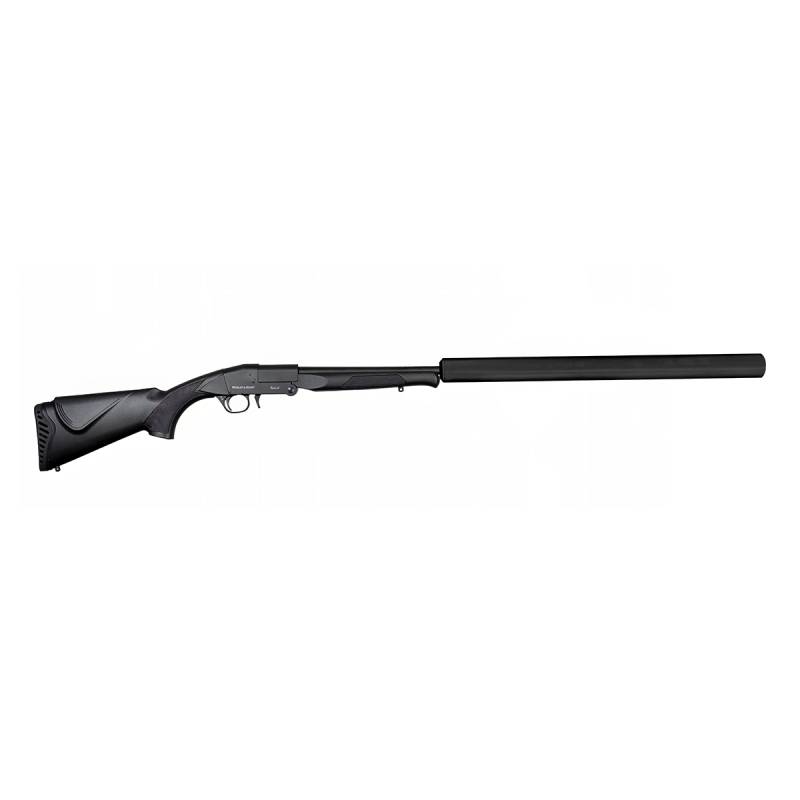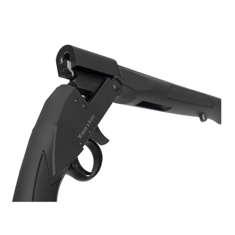 The Webley & Scott Raskal folding .410 single barrel shotgun. The all-steel action is fitted with a synthetic stock and forend. The Raskal Mod has all the features of our standard Raskal, just with the addition of a moderator. Designed for when noise could be an issue, the moderator greatly reduces the output dB when firing.
